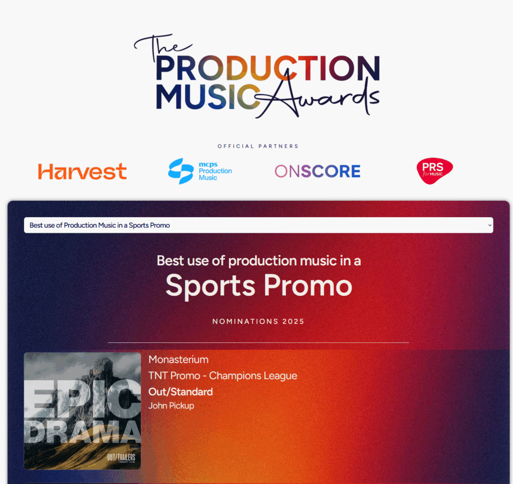 Production Music Awards 2025 nomination. Nice to be nominated again after a win a couple of years ago.